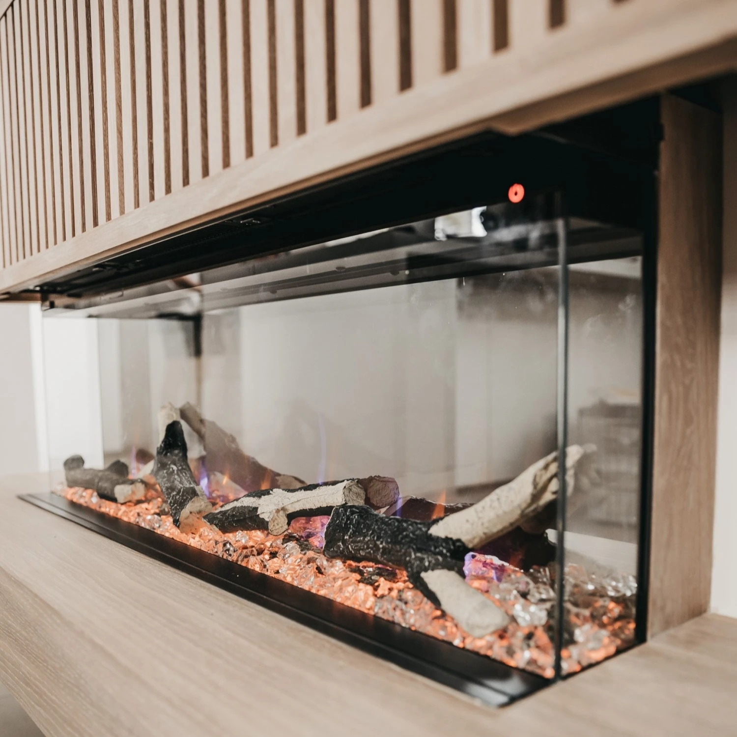 The Celestial 36″ features 3 exceptional flame effects; orange, blue and mixed orange blue and a choice of 12 fuel-bed colours, thus allowing you to fully illuminate the unit and create a relaxing, authentic experience, only added to by the decorative fuel bed composed of crystals and artificial logs* (controlled only from the unit itself).