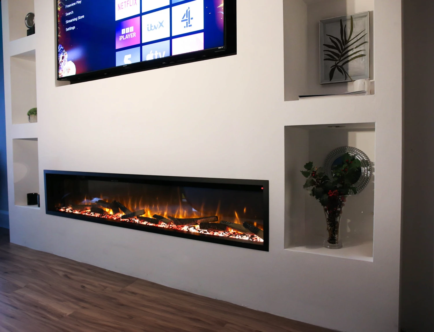 The new finishing trims for our Celestial media wall fires gives you an easy to install black metal trim which frames the fire.